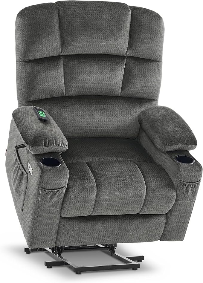 MCombo Dual Motor Power Lift Recliner Chair with Massage and Heat for Elderly People, Infinite Position, USB Ports, Cup Holders, Fabric 7679 (Medium, Grey)